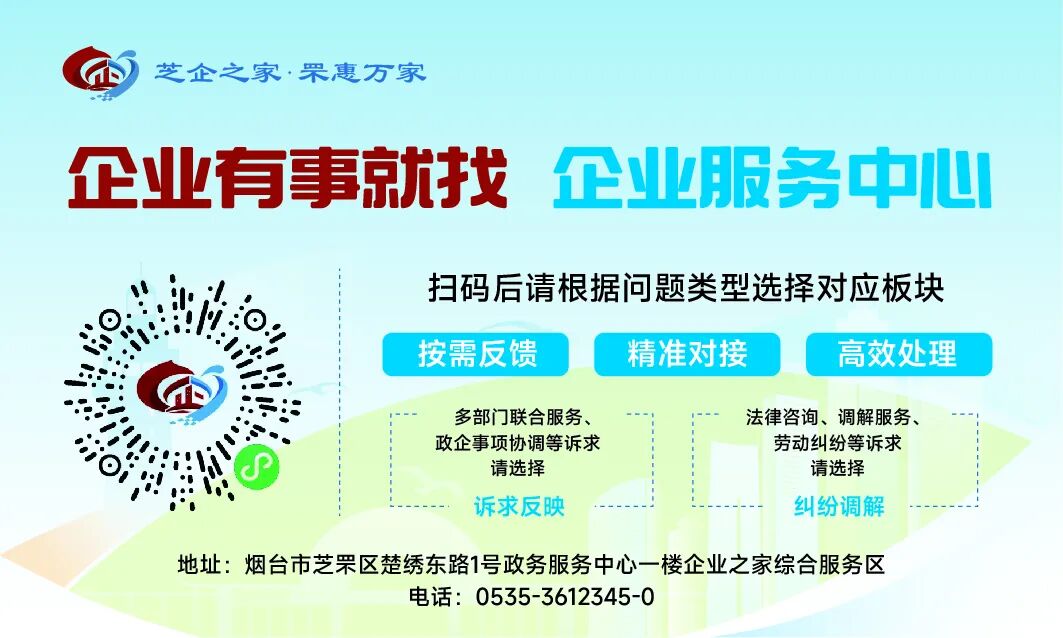 企业在经营中遇到的任何难题——无论是选址、融资还是法律咨询,都可以通过“芝企之家”小程序线上平台的“问题直通车”板块或拨打咨询电话3612345-0反馈,芝罘区企业服务中心将通过涉企问题兜底解决机制,联动各方资源提供必要支持。