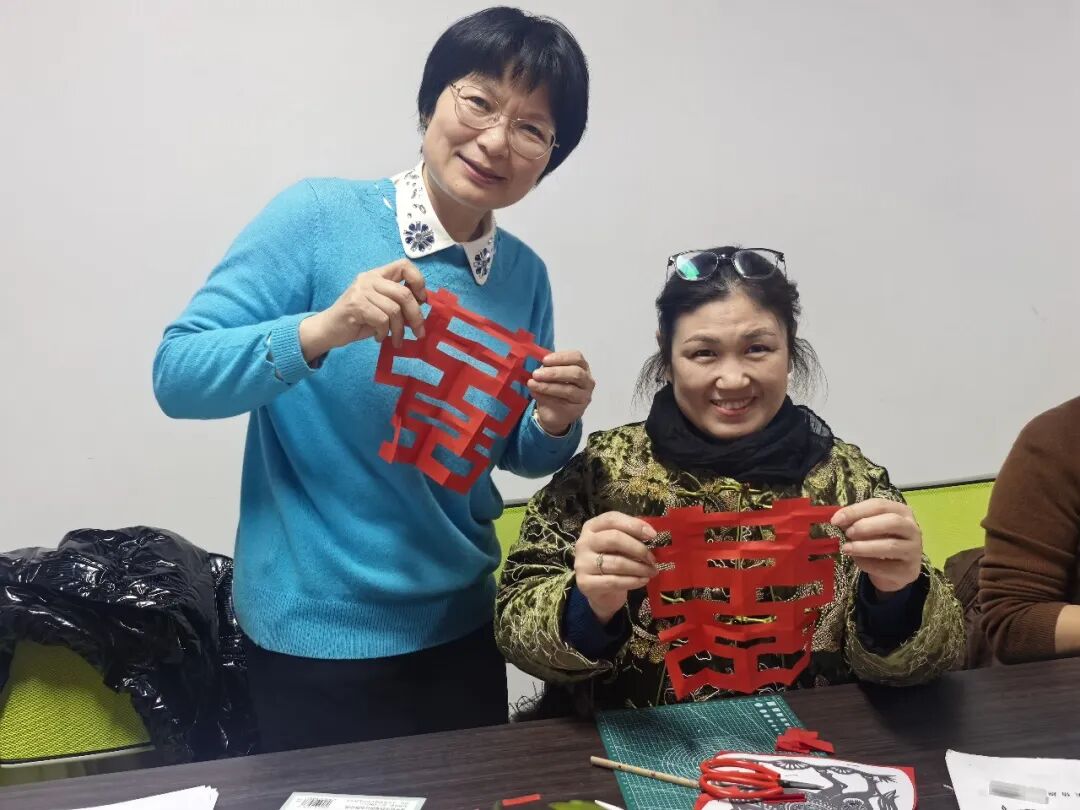手工剪纸公益课特邀精通书法、国画与剪纸的娟子老师现场授课,老师先讲解剪纸千年历史与地域特色,再拆解对折、画线、裁剪等核心技法,同步解读福字、窗花、生肖等新春纹样的吉祥寓意。“红纸对齐压实,剪刀顺线慢走,边角圆润更喜庆”,老师示范间,普通红纸化作精致福字窗花,引得职工纷纷上手。大家从生疏试探到熟练剪裁,剪刀翻飞、纸屑轻落,不少人还在传统纹样中融入巧思,一张张吉祥剪纸承载新春期许。参与职工坦言,亲手剪纸重拾儿时年味,既学会了技艺,更近距离触摸到了非遗温度。