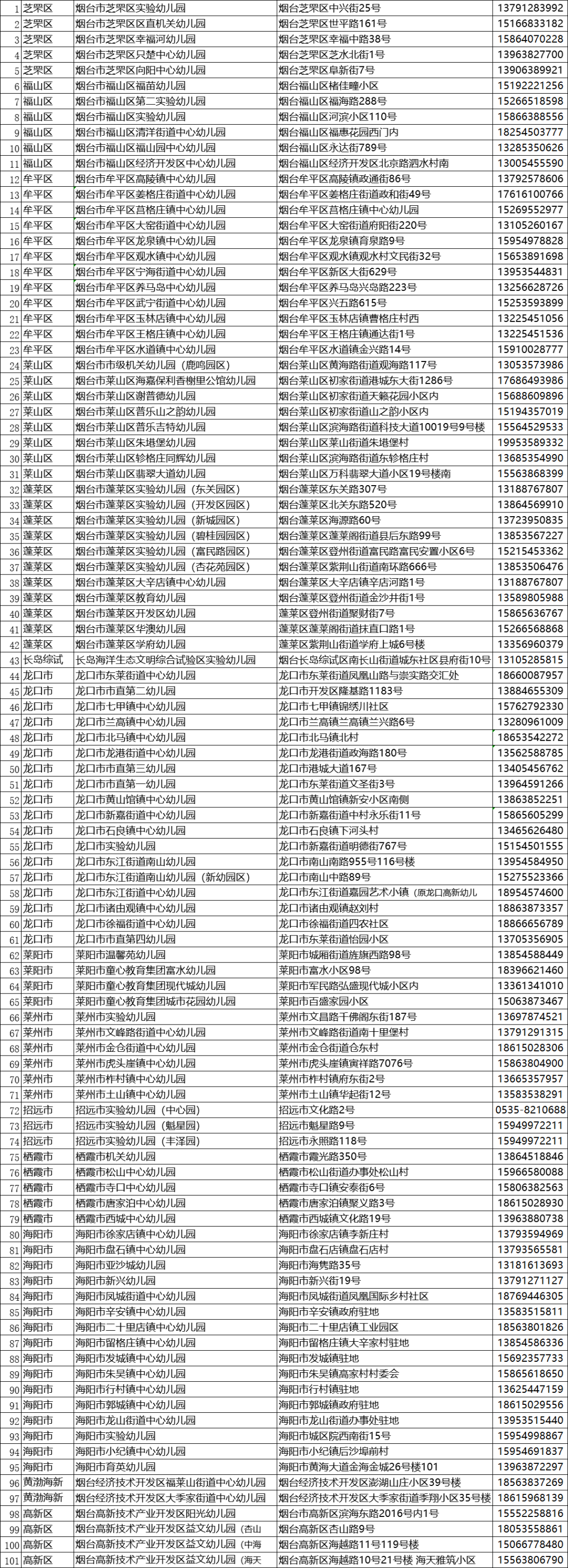 现将烟台市完成备案的普惠性托育机构名单(截至