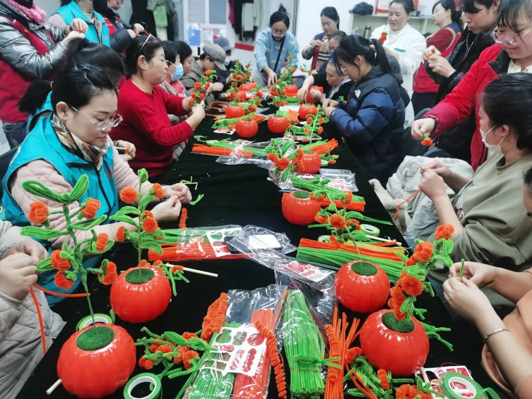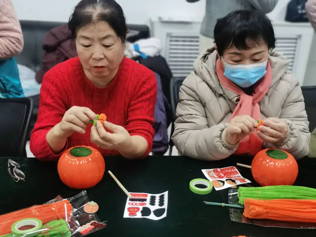 活动室内,长桌上整齐摆放着各色扭扭棒、胶带、装饰叶片等材料。在手工老师的逐步指导下,居民们手指翻飞,将普通的扭扭棒通过卷曲、缠绕、固定等手法,逐渐塑造成一个个饱满可爱的柿子造型。金橙色的“果实”搭配翠绿的“叶片”,栩栩如生的“柿柿如意”挂件陆续诞生。