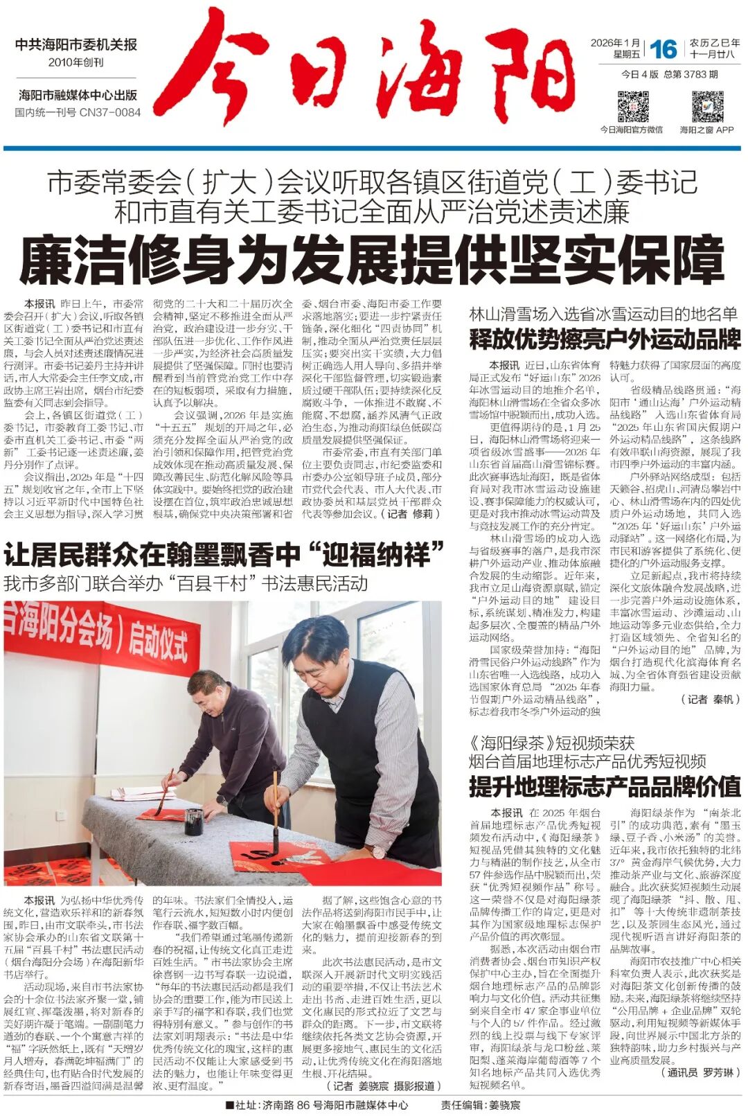 读报|《今日海阳》1月16日电子版