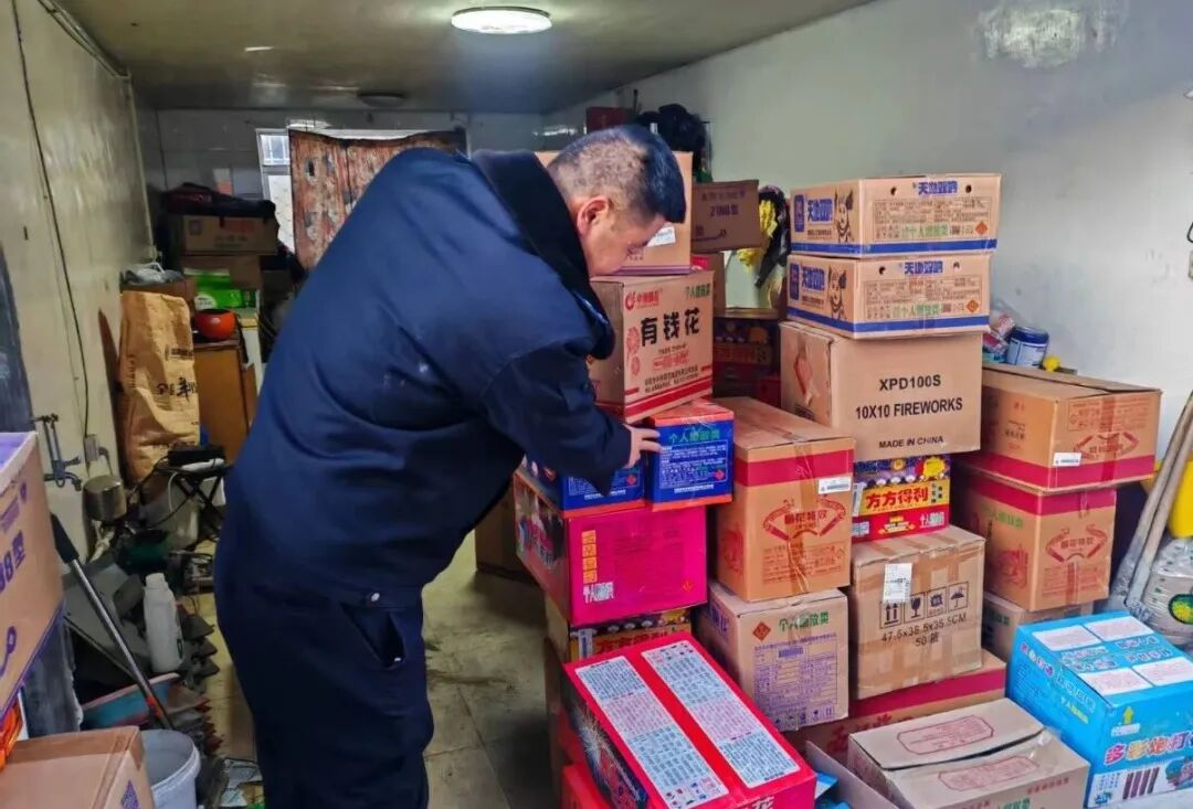 1月5日,龙泉派出所民警在牟平区牟山路南端南店子新村一车库内发现,曲某私自存放多60余箱烟花和多盘鞭炮。车库紧邻居民区,且长期通电用于电动车日常充电,存在较大安全隐患。