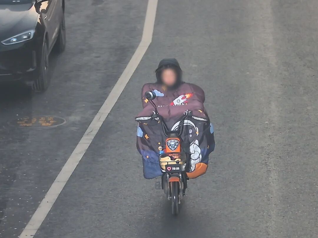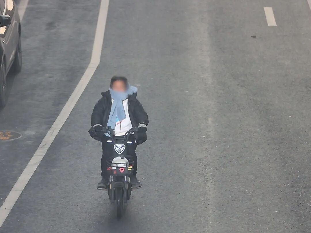 天气寒冷,部分摩托车、电动车骑乘人员帽子、手套等各种保暖用具齐上阵,却唯独将最重要的安全头盔“冷落”在一旁。