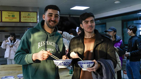 活动最后,众人围桌而坐,畅谈美食与文化,品尝了一起制作的经典鲁菜与特色蓬莱小面。国际学生们在温馨融洽的氛围中进一步深化了对中华饮食的认知,也分享了各自国家的饮食习俗,实现了一场跨越文化的味觉对话。