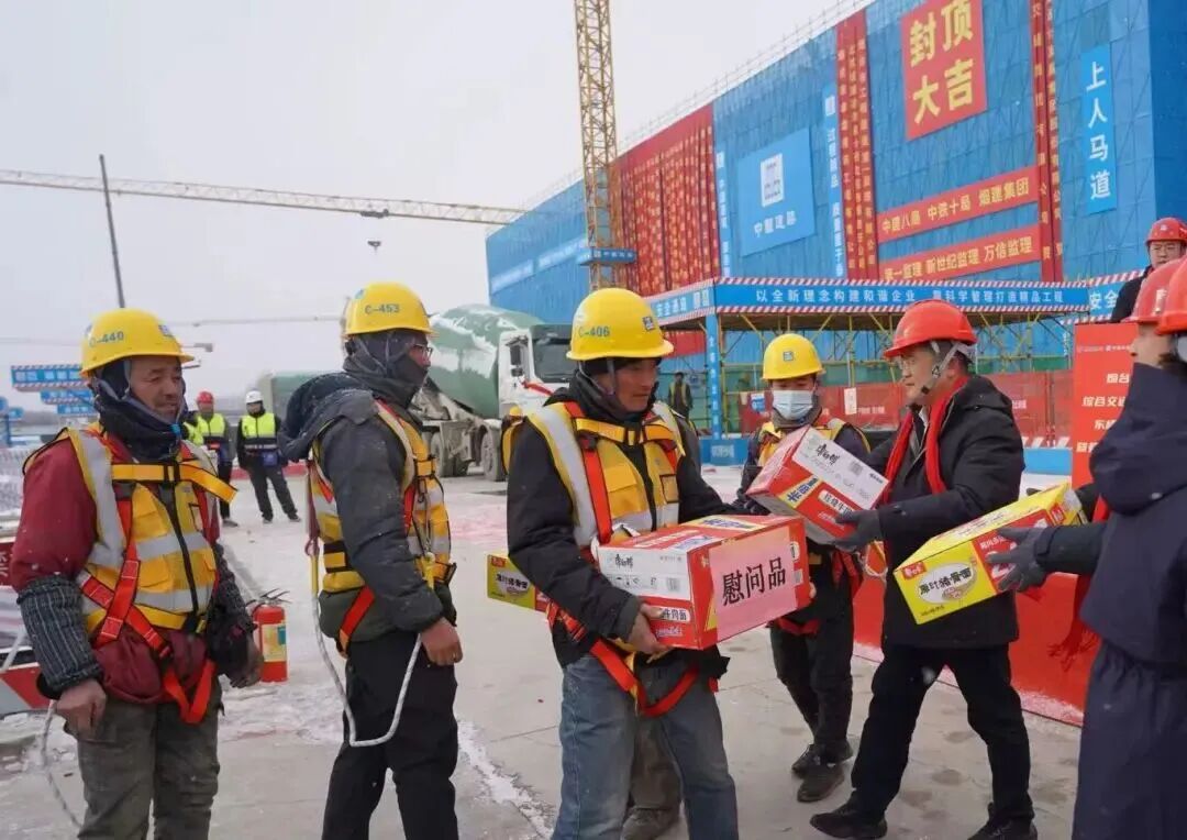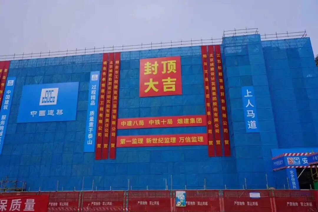 近日,由中建八局承建的烟台南站综合交通枢纽工程东楼主体结构顺利封顶。