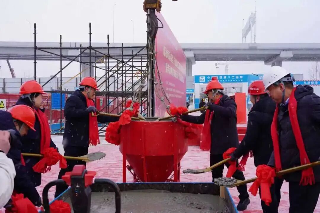 烟台南站综合交通枢纽工程作为完善现代综合交通体系的重点民生工程,总建筑面积达17.27万平方米,致力于打造高效便捷的现代化交通枢纽。此次东楼主体结构封顶,是工程建设的重要阶段性胜利。