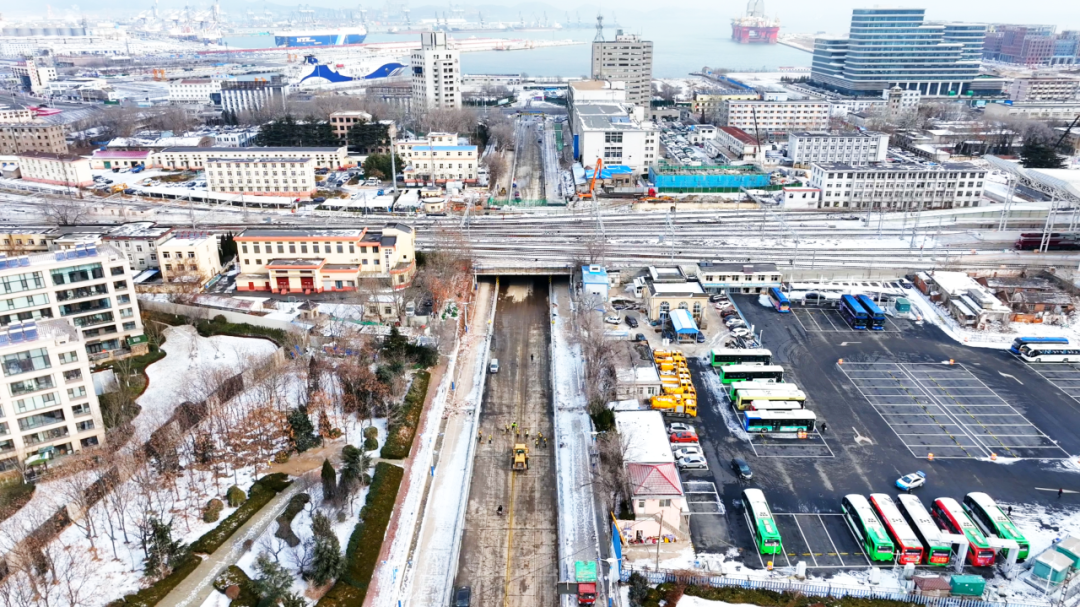 据了解,新建的青年路框架中桥全长12.4米,目前主体结构及路面已全部完工。本次改造将原框架桥拓宽12.4米,新增一条铁轨,可以替代原有的烟台港专用线路功能,进一步提升铁路运输效率。