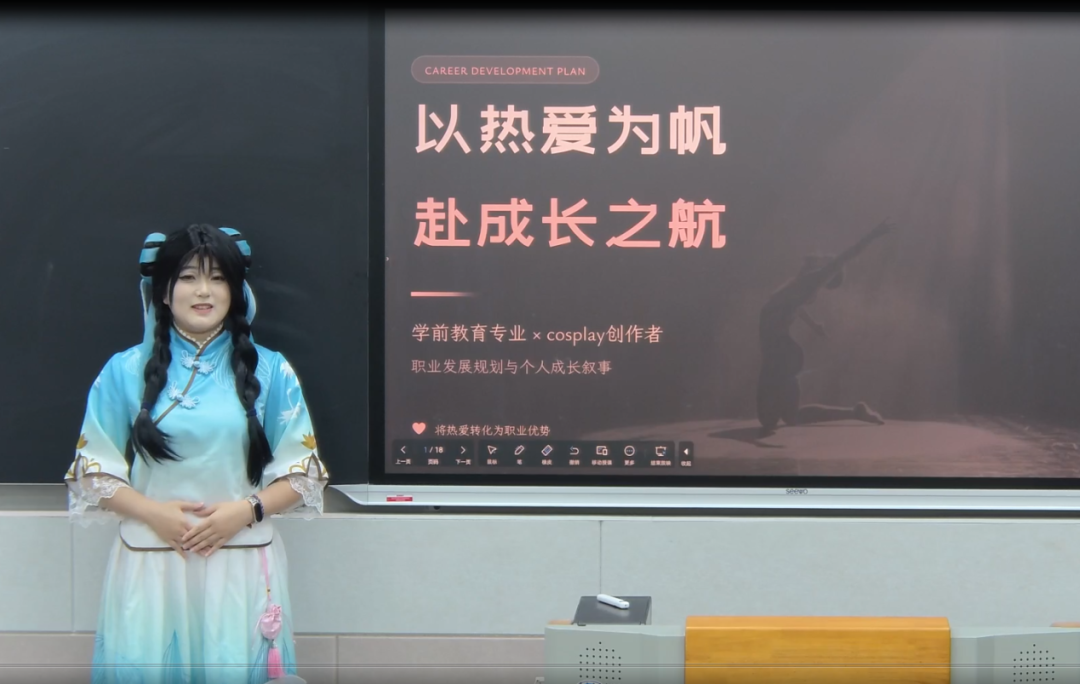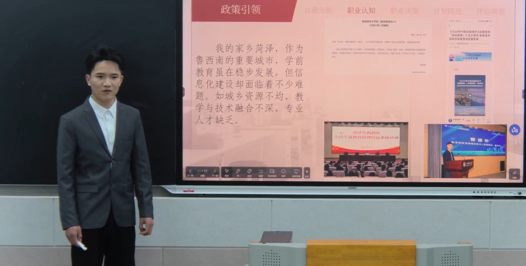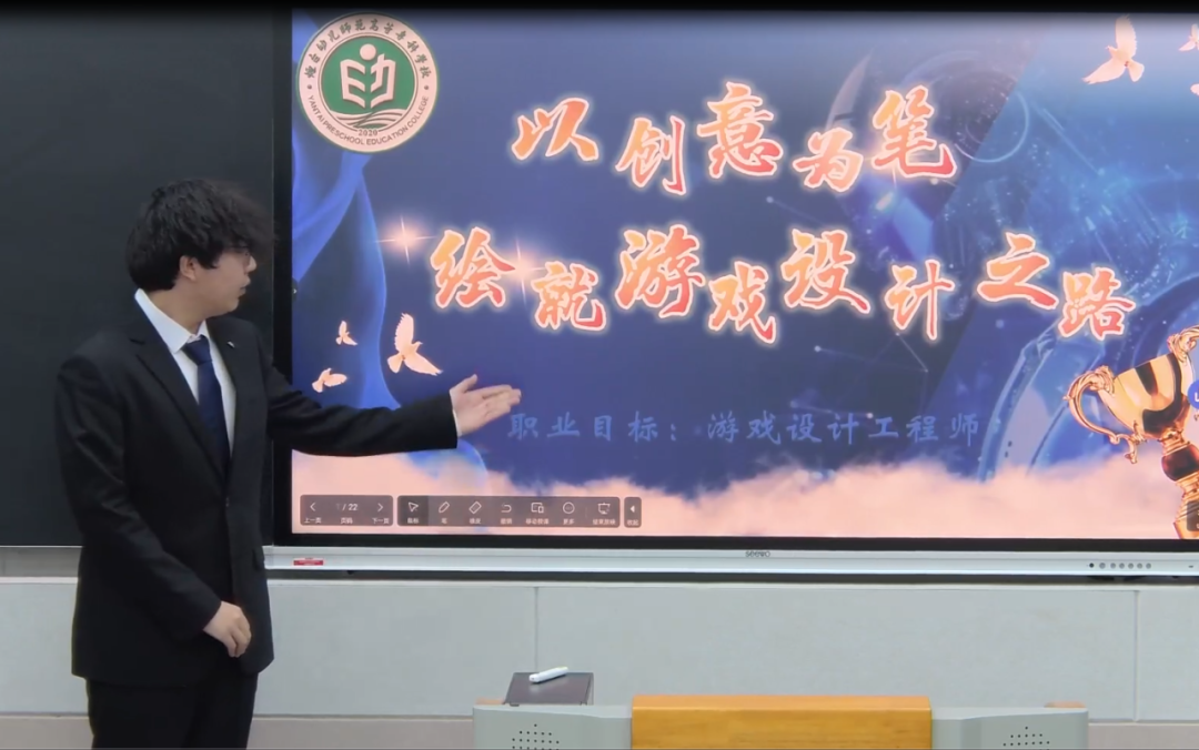 决赛现场,30名选手同台竞技,展开巅峰对决。在“主题陈述”环节,选手们结合翔实的个人分析报告与职业市场调研数据,清晰地描绘出从“校园人”到“职业人”的成长路径,目标涵盖幼儿教师、动漫设计师、社区养老服务专员、乡村文旅策划者等多个领域,充分体现了我校专业设置与产业需求的紧密对接。