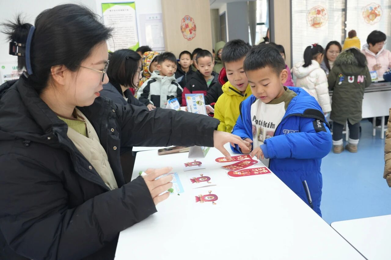 走进乐考现场,校园各处都洋溢着童真与活力。教室、连廊被巧妙布置成“闯关营地”“拼读大冒险”“口算小达人”“福字寻诗句”等一个个充满童趣的关卡牌引人注目,老师们化身“闯关导师”,用鼓励的眼神和亲切的话语引导孩子们勇敢挑战。不同于传统纸笔测试的严肃氛围,这里处处是清脆的应答声、欢快的笑声,孩子们手持专属“闯关卡”,像勇敢的小勇士般穿梭于各个关卡之间,自信地展现着一学期的学习收获。
