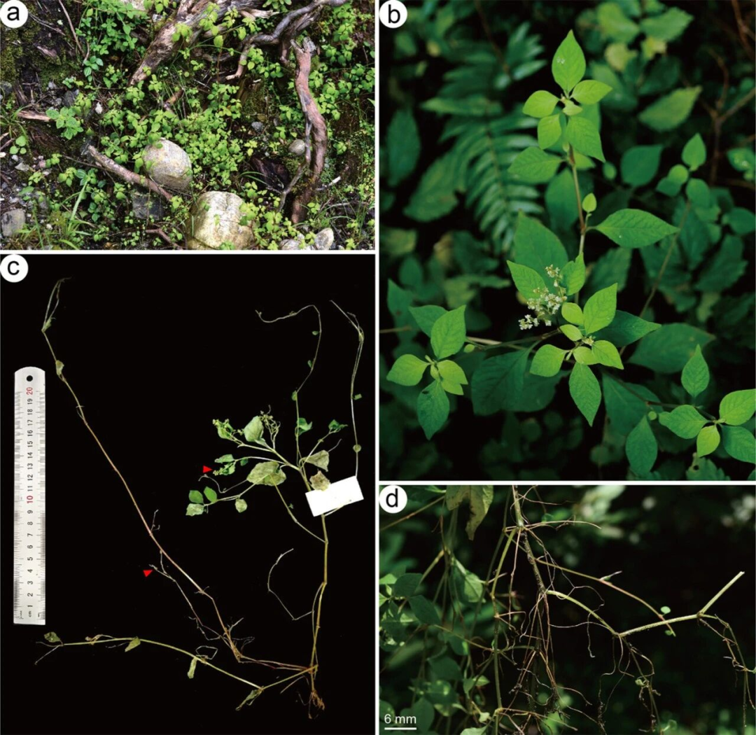 1.墨脱冰岛蓼(Koenigia medogensis Bo Li):该物种隶属于蓼科冰岛蓼属,由中国科学院西双版纳热带植物园研究团队发表于《Ecology and Evolution》。研究人员通过整合形态学(具极短花柱与盘状蜜腺)、孢粉学(具细刺状外壁的Koenigia型花粉)及分子系统发育分析,确认其为一个独立物种,并与绢毛蓼(K. mollis)构成姊妹群关系。其最显著的进化特征在于演化出“双珠芽”营养繁殖策略:在侧枝顶端形成不脱落的珠芽,通过匍匐茎产生克隆植株;同时在花序基部形成可脱落的珠芽。该策略在蓼科内属首次报道,被认为是保障其在持续高湿的季风气候环境中有效拓殖与定植的关键适应机制。