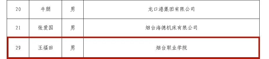 近日,2025年度烟台市“双百计划”拔尖人才(专业技能类)名单公布,烟台职业学院交通工程系教师王福田榜上有名。
