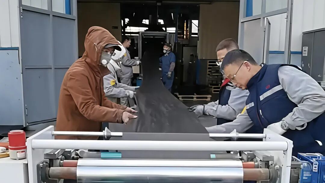 首批样品送到产线,田洪池亲自“督战”。他期待看到一张膜,但机器压出了一堆渣。