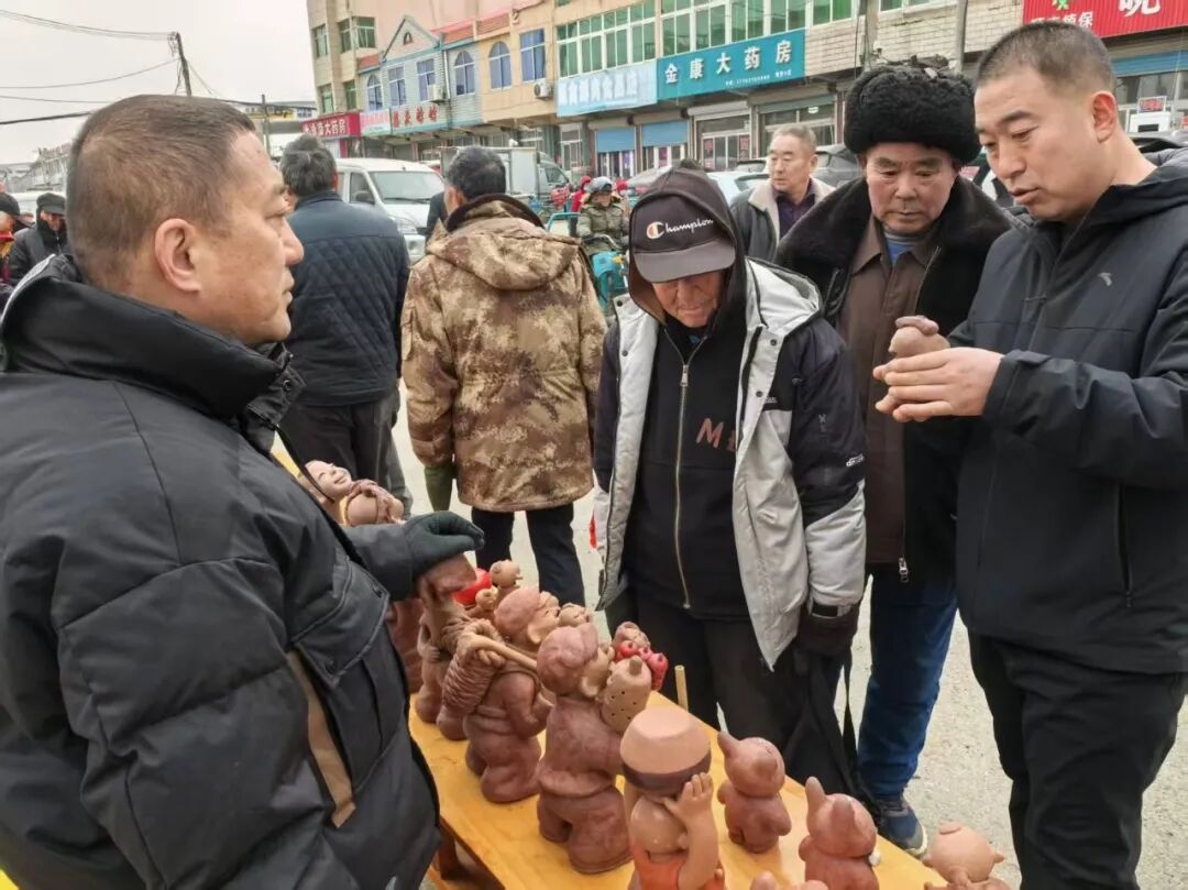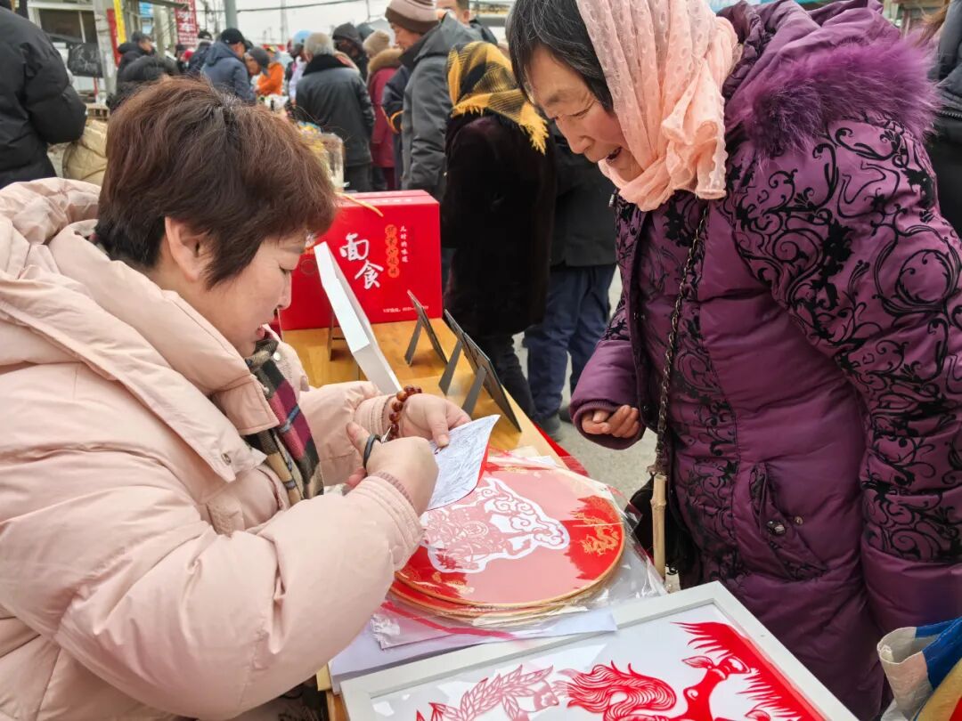 观里镇大集活动现场,面塑、泥塑、剪纸等领域的民间文艺家,以及书法家们以作品展示、现场展演的方式,为人们呈现一场精彩纷呈的视觉盛宴,让传统的百姓集市焕发出浓郁的文化色彩。“正好腊八来赶集,集上看到这些作品太好了!太有年味了!”村民们纷纷感叹。这些红彤彤的春联、丰富多样的民间艺术品不仅是对新春的美好祝福,更是送到家门口的文化暖意。