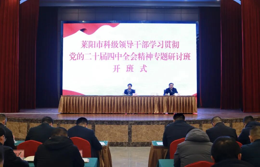 1月26日,莱阳市科级领导干部学习贯彻党的二十届四中全会精神专题研讨班开班式在丽都山庄盛世华堂举行。市委书记卢春玲出席并讲话,市委常委、组织部部长王晓君主持会议。各镇街、市直有关部门负责同志,部分科级领导干部参加会议。