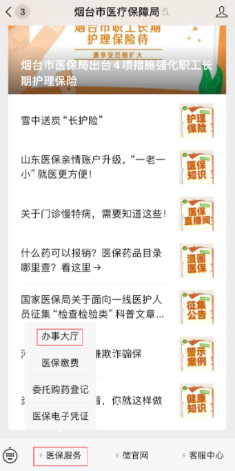 2.关注“烟台市医疗保障局”微信公众号激活申领