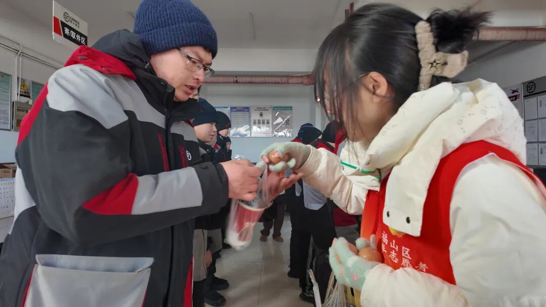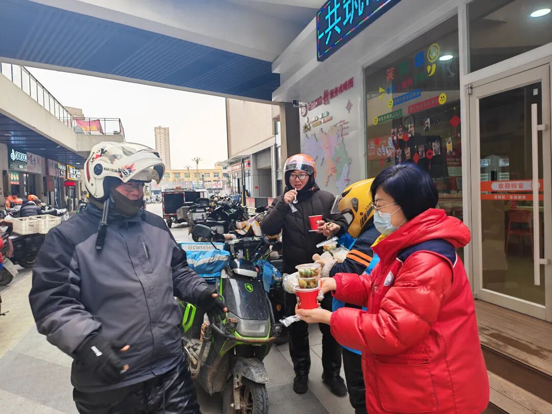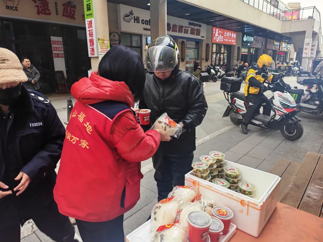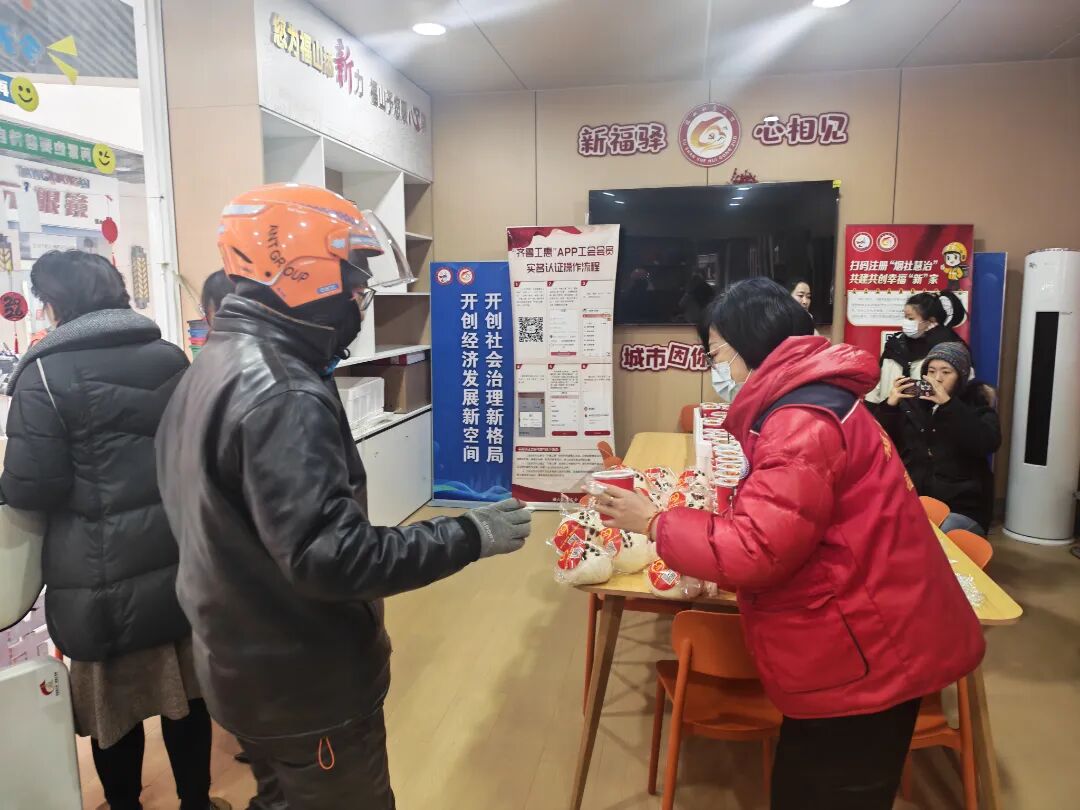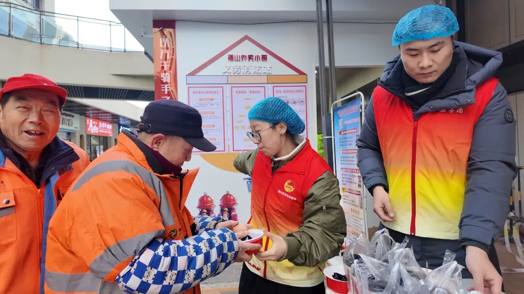 腊八清晨,福山街头寒意正浓,五个派送点却已热气升腾。1月25日至26日,烟台市福山区总工会、福山区委社会工作部、福山区委统战部、共青团福山区委等联合开展“粥暖腊八·爱润福山”主题活动。在“新福驿”暖新驿站、春笋托管、香逸中央美团站点、公交车站、零工市场设立派送点,为1500余名快递员、外卖骑手、网约车司机新就业群体及户外劳动者免费送上腊八粥、腊八蒜与福山花饽饽。