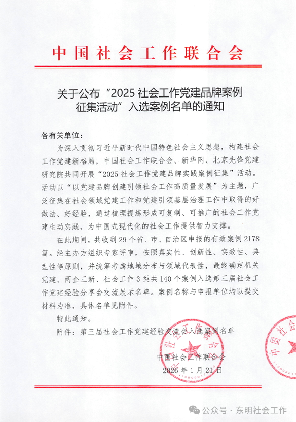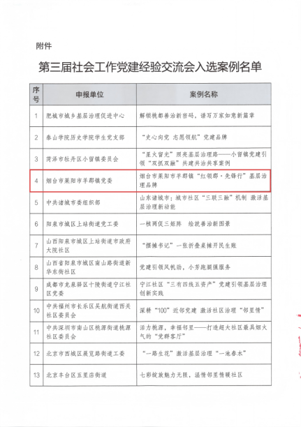 1月21日,中国社会工作联合会公布全国“2025社会工作党建品牌案例征集活动”入选案例名单。烟台市莱阳市羊郡镇“红领郡·先锋行”基层治理品牌案例从全国2178篇有效案例中脱颖而出,成功入选“第三届社会工作党建经验交流会”交流展示名单,并获邀参加在京举办的“新华网2025党建品牌实践成果分享会暨第三届社会工作党建经验交流会”。