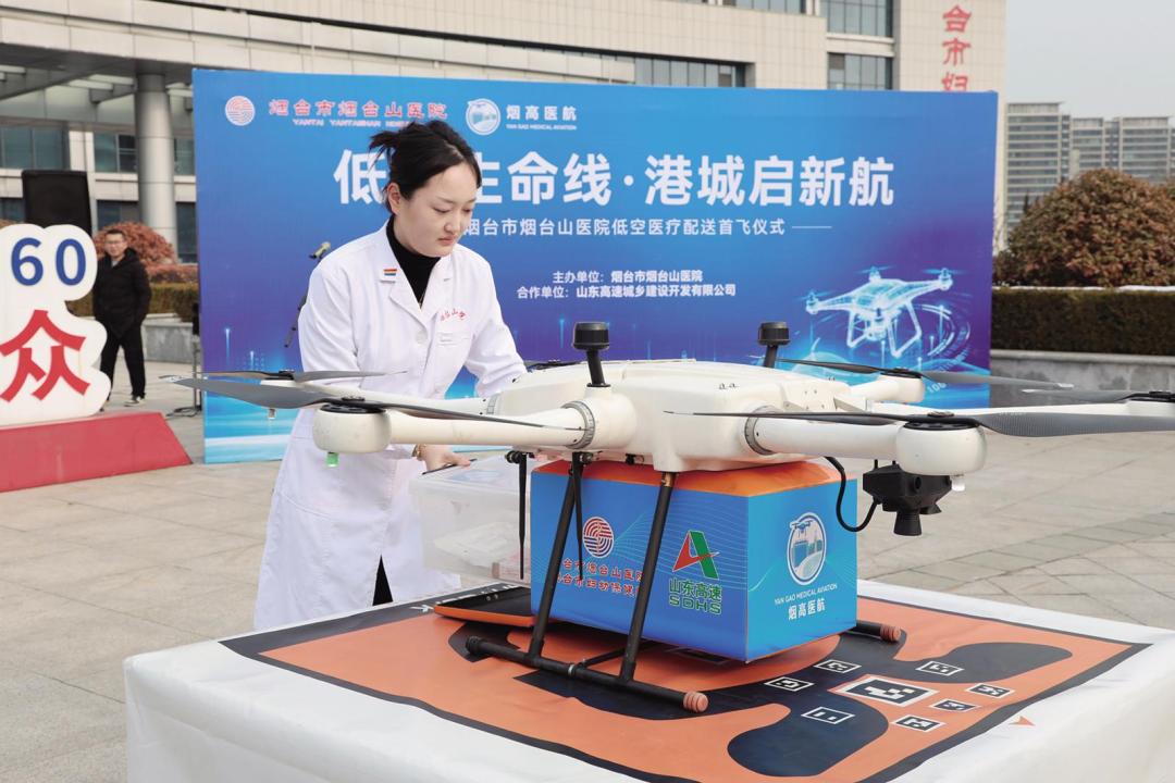 这是胶东半岛首个低空医疗配送的启动仪式。烟台山医院党委书记、院长姜俊杰表示,此次启动的低空医疗配送体系,是低空经济赋能医疗服务的务实之举。它将率先打通烟台山医院三个院区之间及烟台山医疗集团高新区医院的“空中互联通道”,可实现急救物资、血制品、病理样本等医疗物资的高效精准转运。