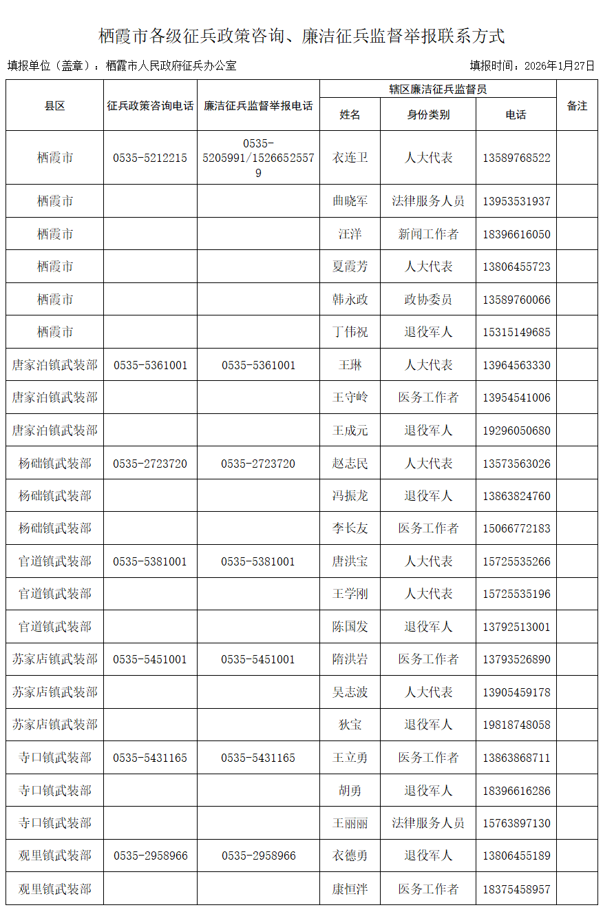 为方便广大应征青年及家长咨询征兵政策,同时畅通廉洁征兵监督举报渠道,营造风清气正的征兵环境,现将各级征兵政策咨询、廉洁征兵监督举报联系方式整理如下。快收藏备用吧!