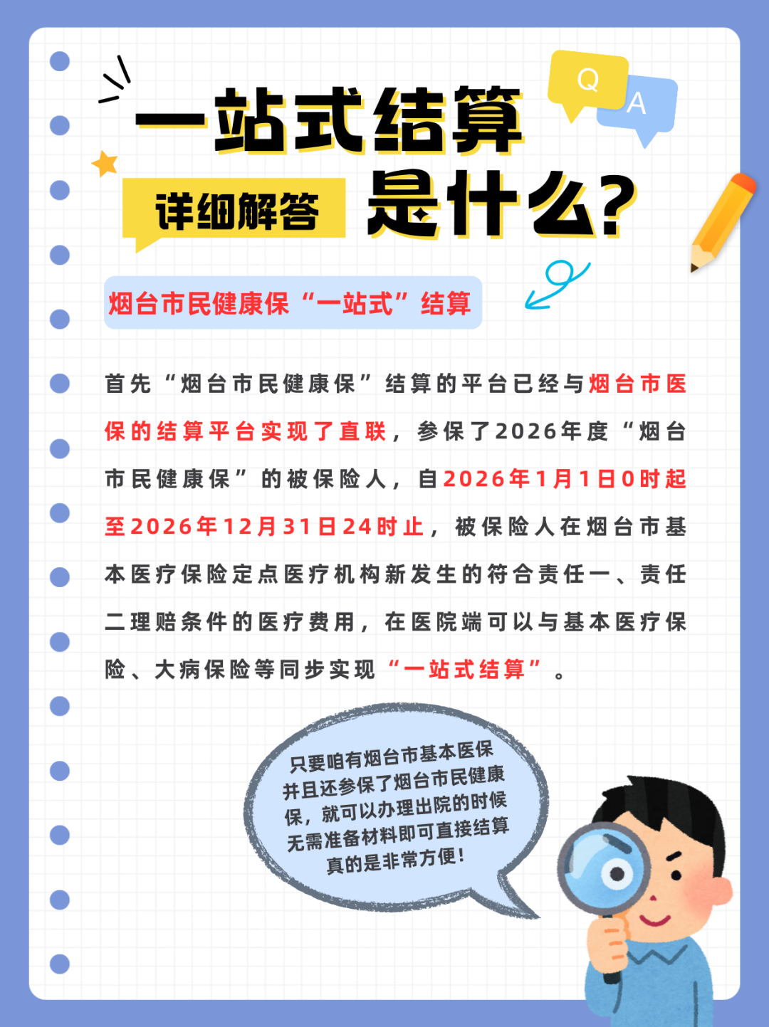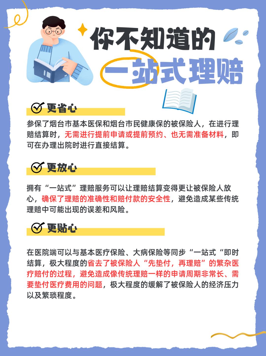 大家在给家里人去办理出院的时候,会发现很多时候实际的医疗费用和我们预想的医疗费用对不上或者有出入。我们在看了结算单后才知道,原来“烟台市民健康保”已经“一站式”结算报销完了,不需要我们自己再垫付医疗费和提交材料进行报销了。