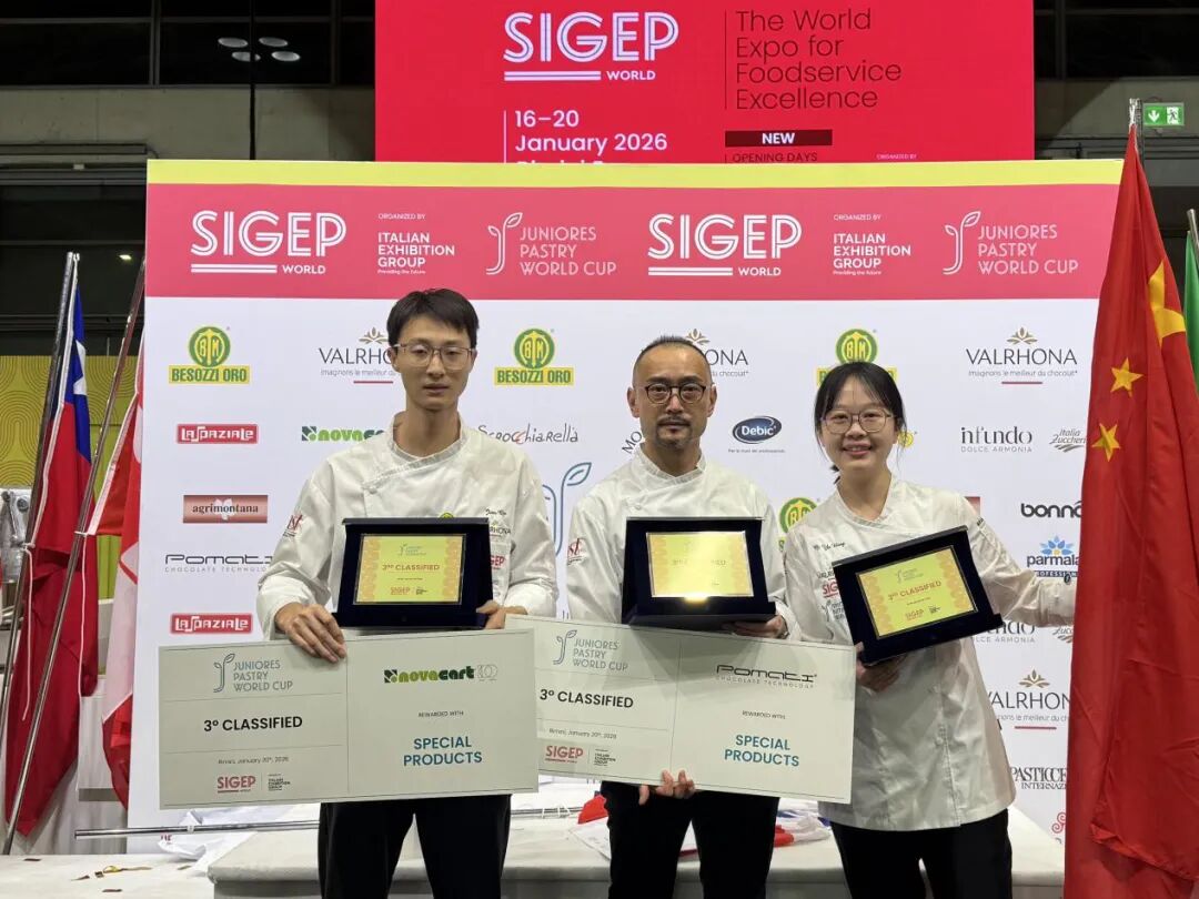 当地时间2026年1月21日,第七届青年西点世界杯决赛在意大利里米尼圆满落幕。以山东城市服务职业学院西餐学院教师曲鉴为主力的中国队在来自12个国家的13支顶尖队伍中脱颖而出斩获季军,将中国西点技艺与文化风采刻在了国际赛场。