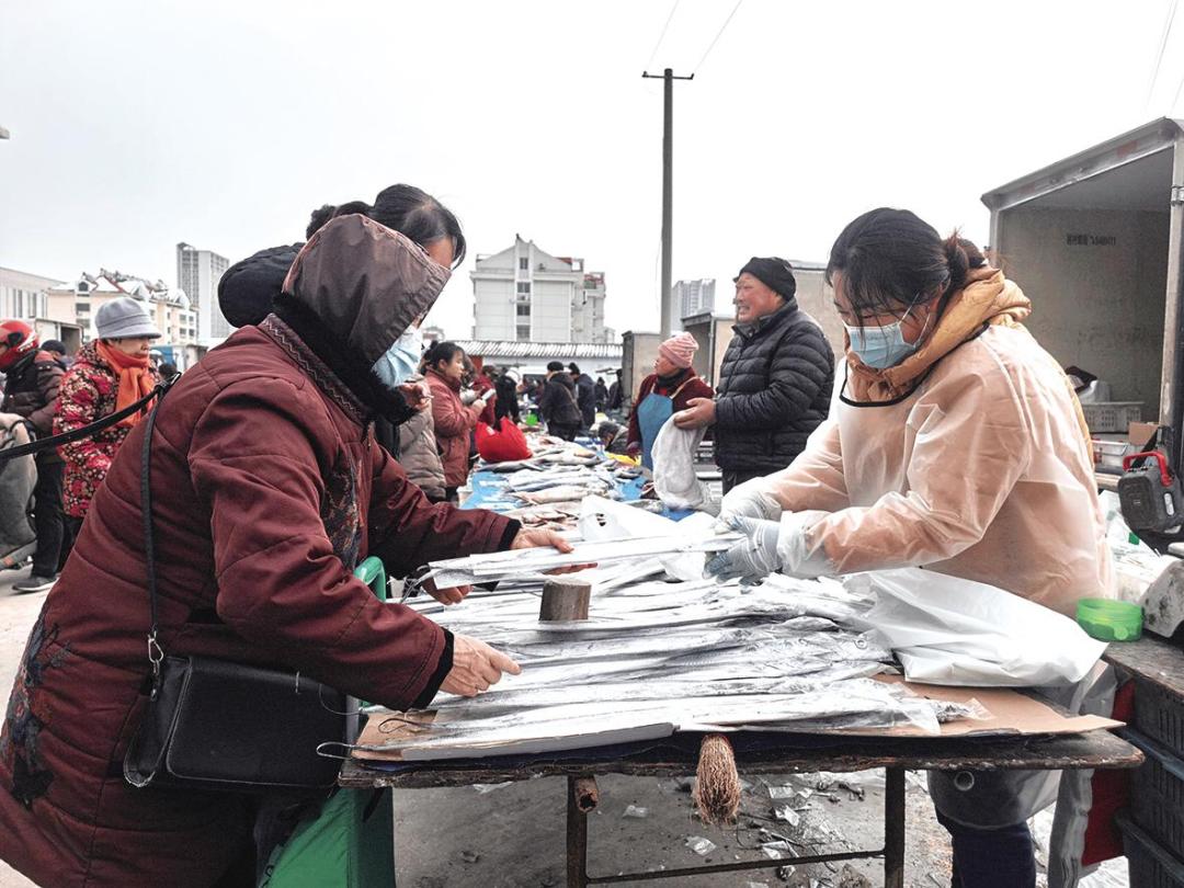 “买了带鱼和鲅鱼,回家煎带鱼,做熏鱼,吃不够。”正在选购冻鲅鱼的赵先生告诉记者,这几样鱼家里人一年四季都爱吃。