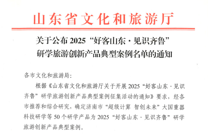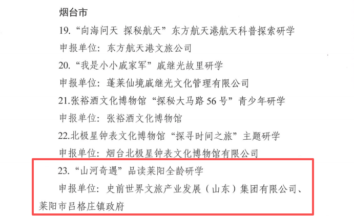1月28日,山东省文化和旅游厅公布2025“好客山东·见识齐鲁”研学旅游创新产品典型案例。莱阳市“山河奇遇”品读莱阳全龄研学案例成功入选。