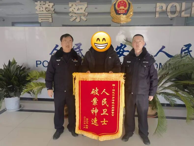 近日,招远市公安局罗峰派出所上演了暖心一幕:曾遭遇“假律师姑父”诈骗的王先生,带着一面印有“人民卫士 破案神速”的锦旗,专程来到派出所向办案民警表达深深的谢意。