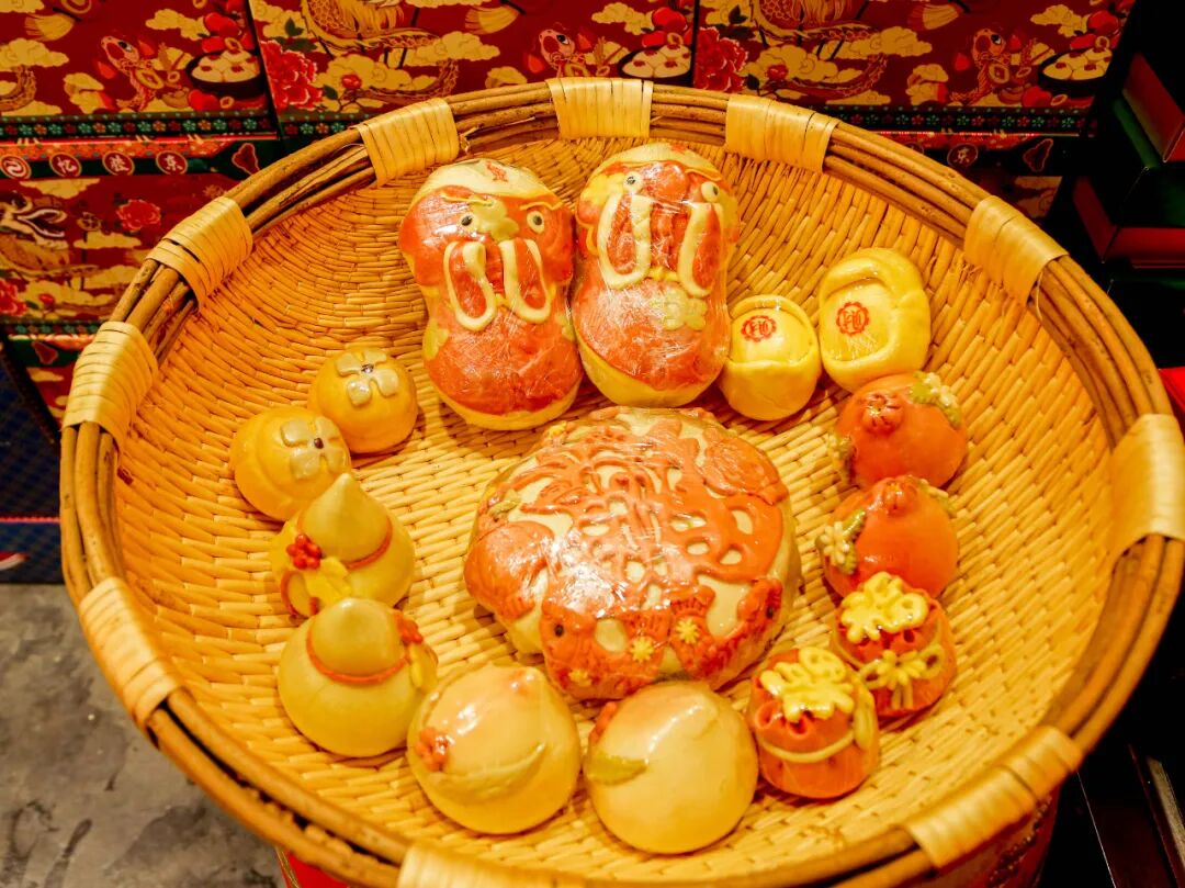 鱼形寓意“年年有余”,福袋造型装满“福气”,元宝样式象征“财源广进”……这些用果蔬汁天然上色、手工捏制的面点,色彩艳丽、造型生动,既可食用又可观赏,是烟台年货中最具视觉冲击力的特色之一。