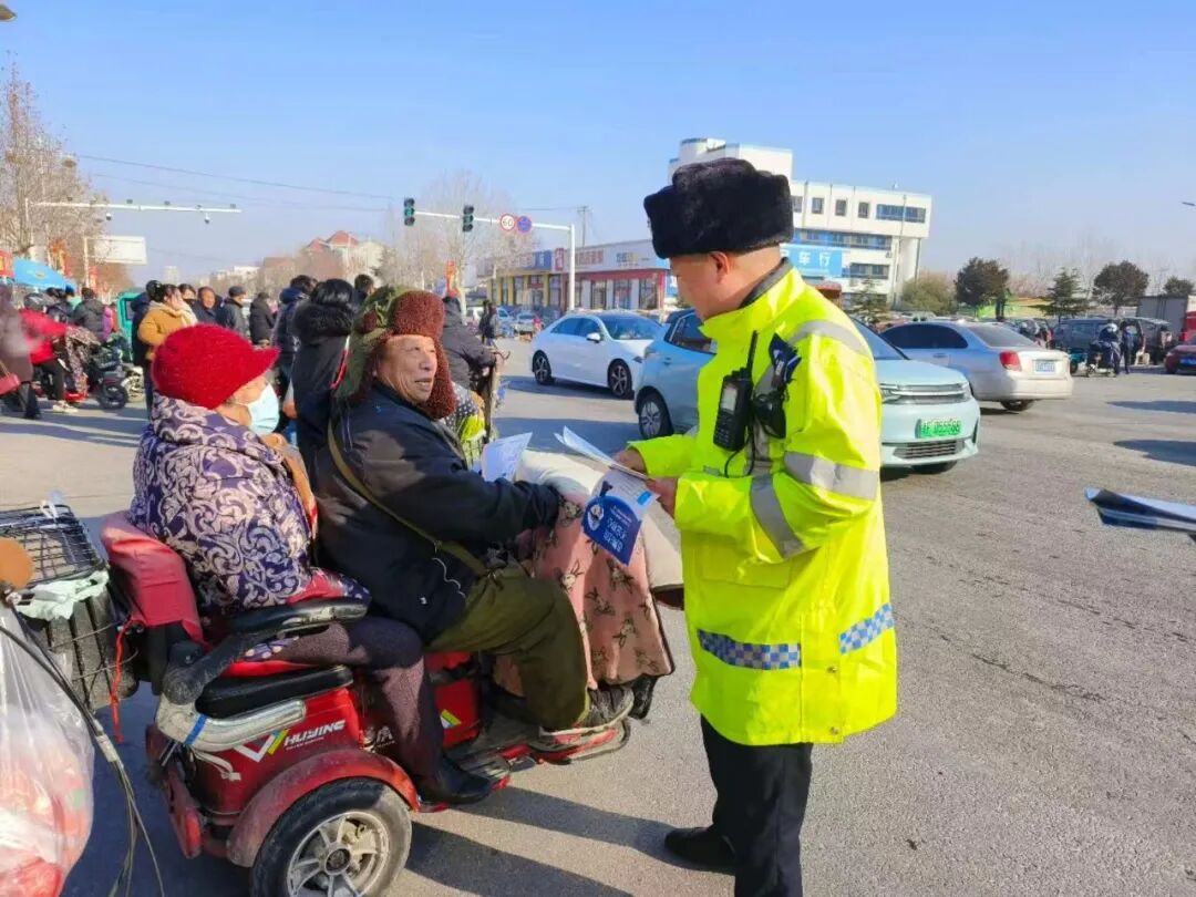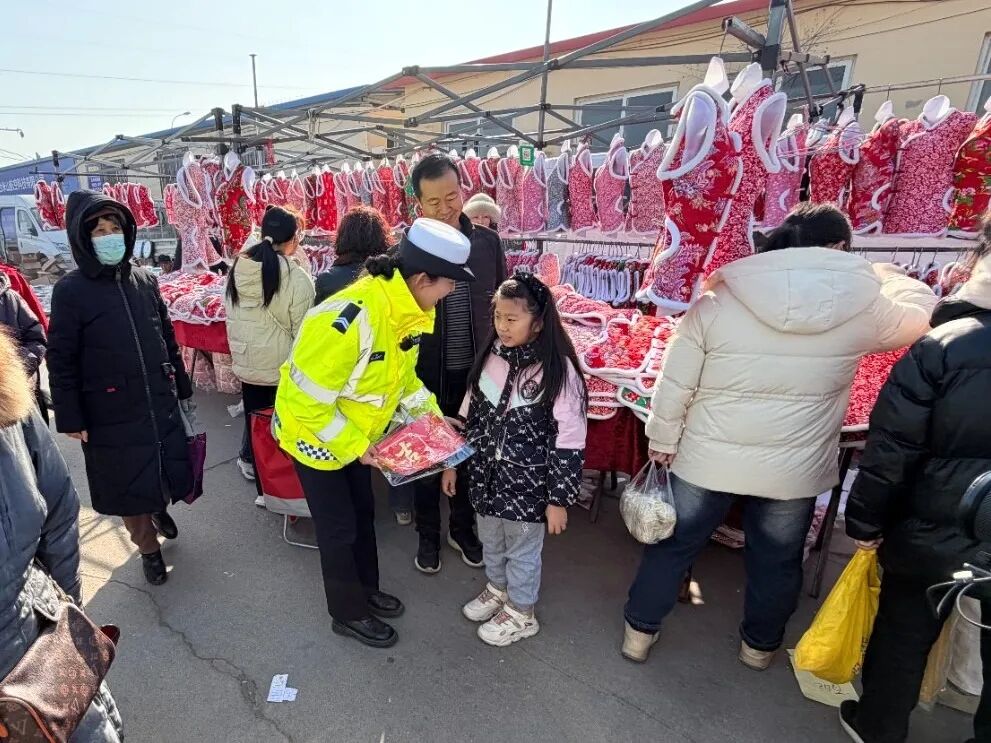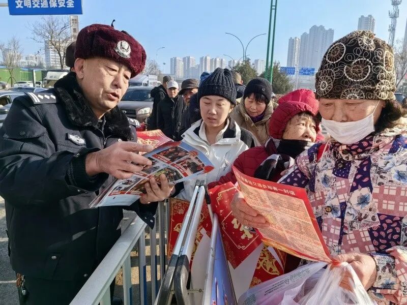 为筑牢道路交通安全防线,守护群众平安返乡、喜乐过节,近日,烟台交警深入辖区大集开展交通安全宣传活动,将安全知识送到群众身边,把新春祝福送进千家万户。