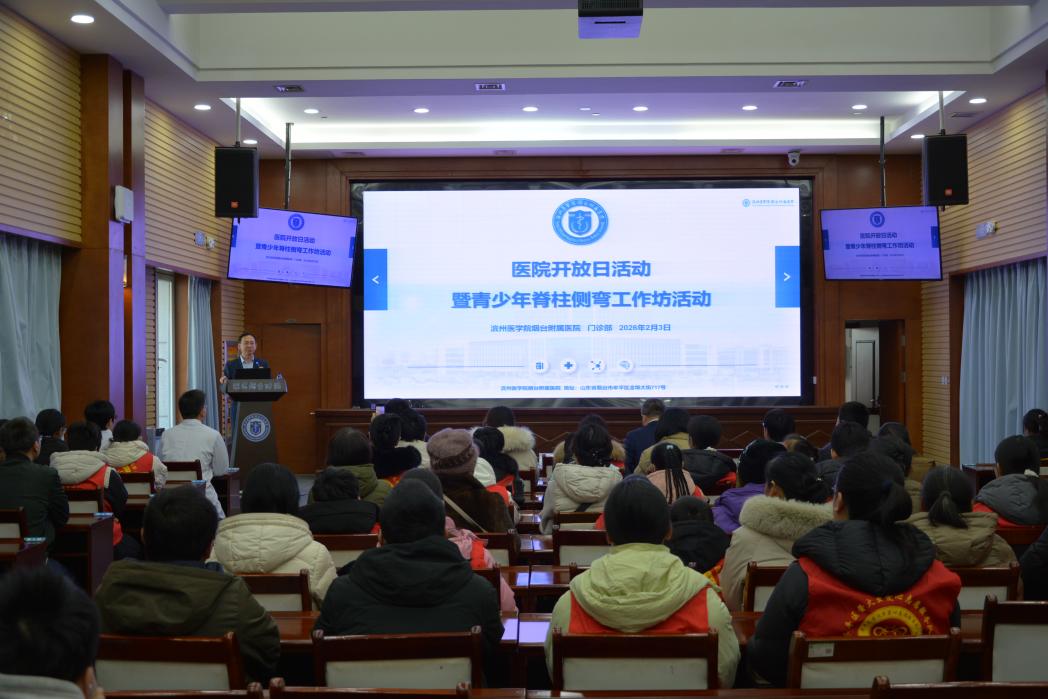 为深入践行“一切为了大众健康”,切实提升公众急救素养与脊柱健康意识,加强民众对医院重点学科的深入了解。2026年2月3日上午,滨州医学院烟台附属医院于门诊六楼报告厅开展 “医院开放日活动暨青少年脊柱侧弯工作坊”活动,党委副书记、院长范万峰出席并发言,党委委员、副院长成雨主持。