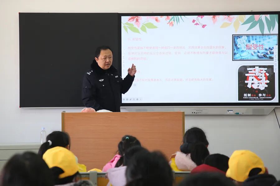 在多媒体教室,戒毒所警官以《守护纯真童年,对毒品说“不”》 为题,围绕毒品的基本知识、毒品的危害及如何做好防毒拒毒等内容,为大家上了一堂生动的禁吸戒毒法治教育课,系统普及禁毒知识,引导孩子们树立“抵制毒品,从我做起”的健康观念,并为每位孩子颁发“禁毒小卫士”证书,号召大家争做禁毒宣传员,共同守护无毒未来。