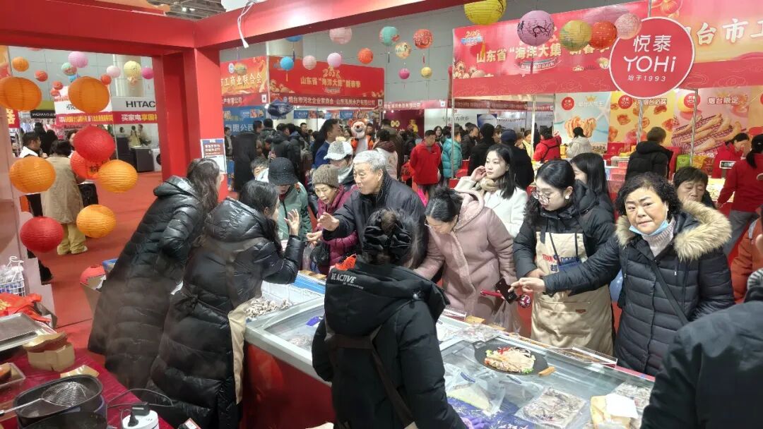 上午9点,烟台国际博览中心里已是人头攒动,吆喝声、议价声、欢笑声交织在一起,勾勒出一幅热闹祥和的忙年图景。