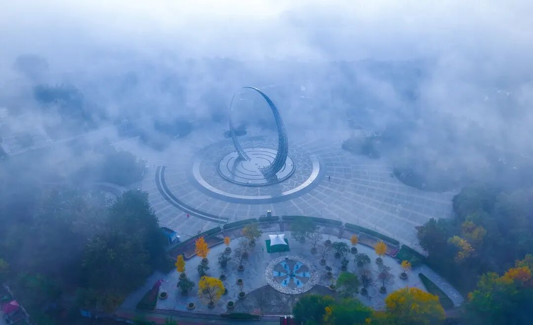 《晨雾绕城》摄影:于少明▽