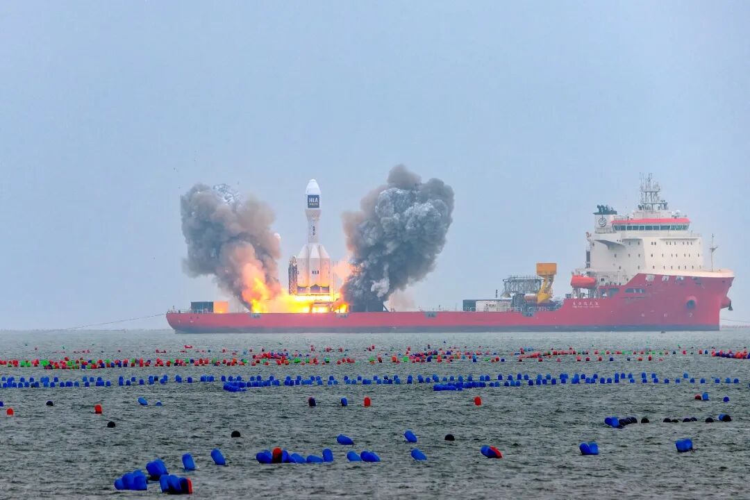 《长征十一号火箭海上飞天》摄影:李克清▽