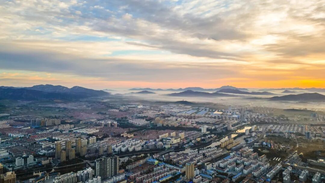 《朝霞映小城》摄影:孙德成▽