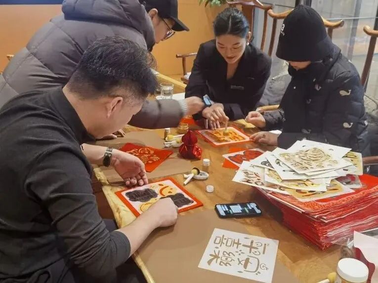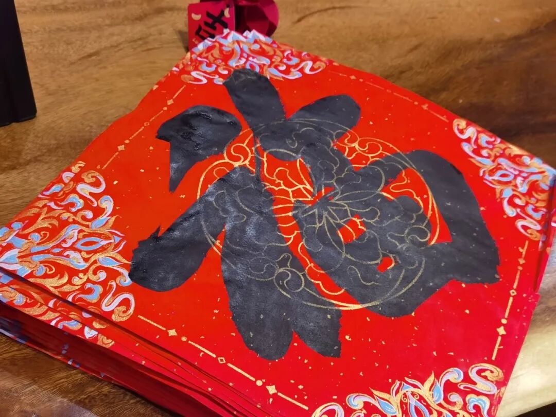 “我们是想让大家亲手写福、拓福,把这份带着手心温度的祝福带回家。”没有机器的整齐划一,每一幅字都有独特的笔意,每一张拓印都带着手作的温度。