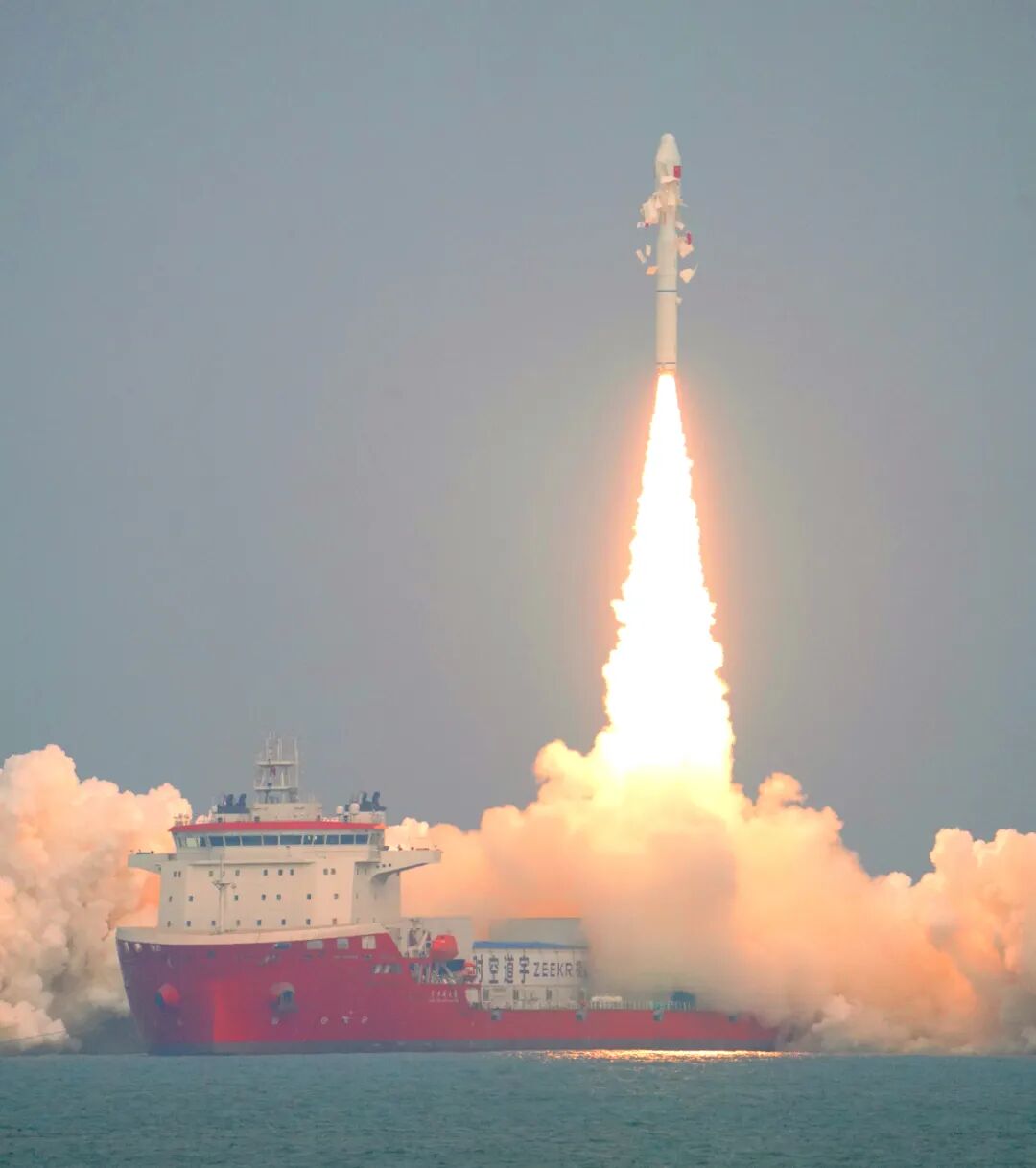 ▲2025年9月24日,由海阳总装出厂的捷龙三号遥八运载火箭,在山东近海海域成功发射。(聂东磊摄)