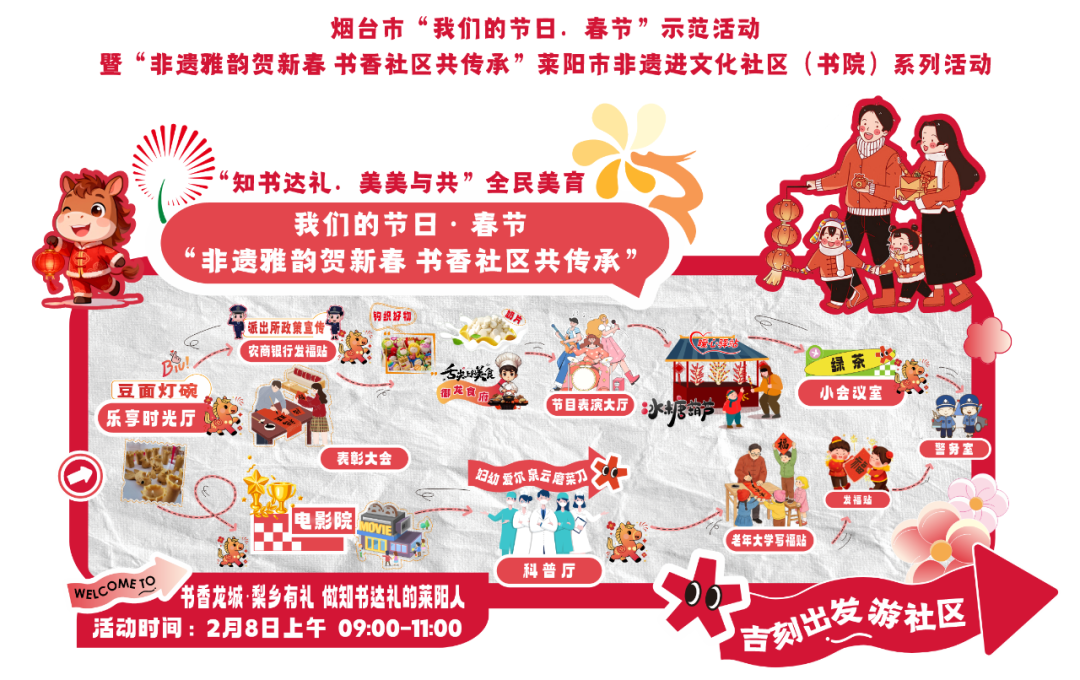 非遗燃情添雅韵,书香逐梦贺新春,邻里相聚赴嘉会,文脉相传启新程。2月8日上午,天龙社区“静澜书院”内墨香氤氲、笑语盈盈。一场以“非遗雅韵贺新春·书香社区共传承”为主题的“我们的节日•春节”非遗进文化社区系列活动在这里拉开序幕。本次活动由中共烟台市委宣传部指导,中共莱阳市委宣传部、城厢街道办事处联合主办,以“主会场游园体验+分会场非遗深耕”的模式,联动五大文化社区,集非遗技艺、民俗体验、新年画赏析与创作于一体,和市民们一起在这场非遗与书香碰撞的幸福之约中,解锁不一样的新春乐趣。