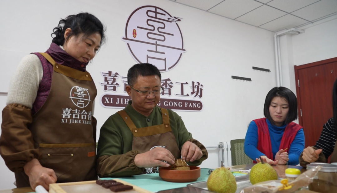 在七星社区文化书院二楼的制香工坊,一场关于“嗅觉非遗”的体验悄然展开。制香非遗老师展示着香牌、香珠等作品,讲解古人“焚香沐浴、佩香祈福”的春节传统。