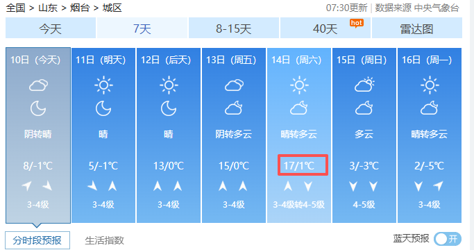 烟台未来7天预报