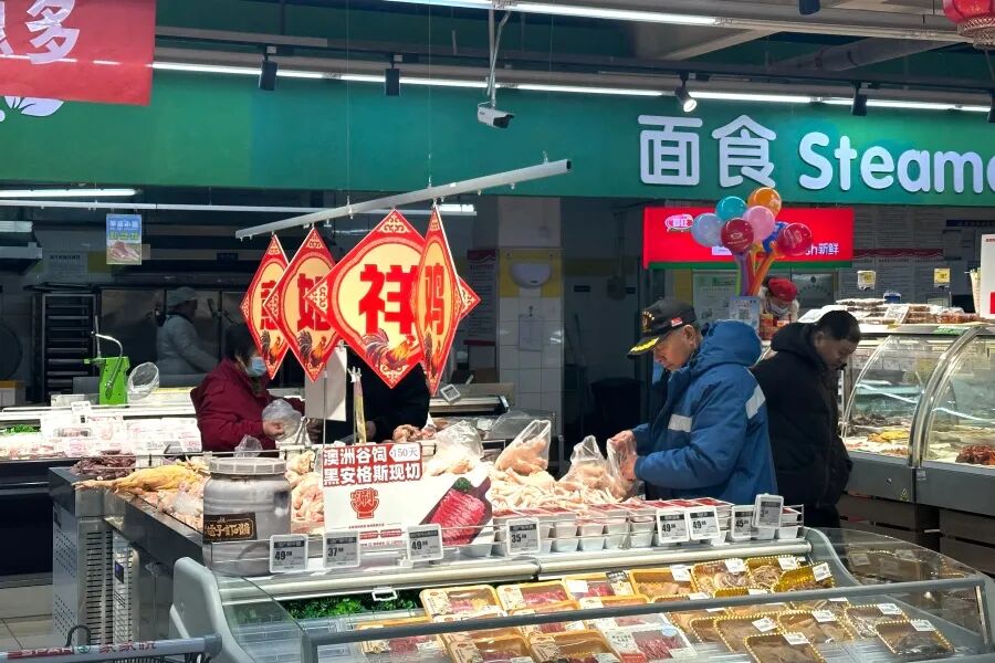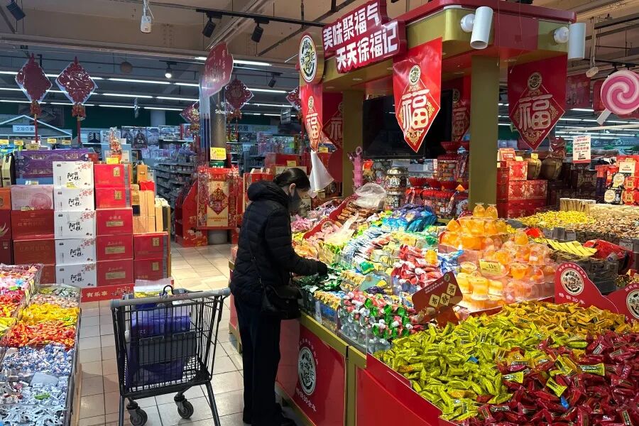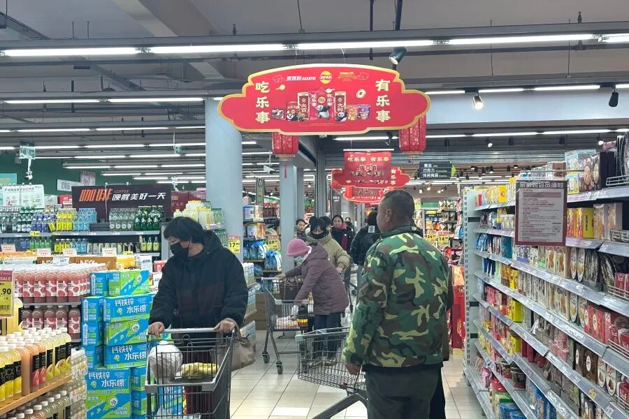 常言道,岁末添好物,新春有欢喜。春节的脚步越来越近,长岛各大商超率先开启“过年模式”,成为居民采购年货的首选之地。记者走访长岛各商超看到,入口处悬挂的大红灯笼、张贴的喜庆海报格外醒目,专门划分的“年货专区”摆满了各类商品,米面粮油、糖果坚果、烟酒礼盒、日用百货等一应俱全,琳琅满目、年味十足。不少居民推着购物车穿梭在货架之间,精心挑选着过年所需的物品。
