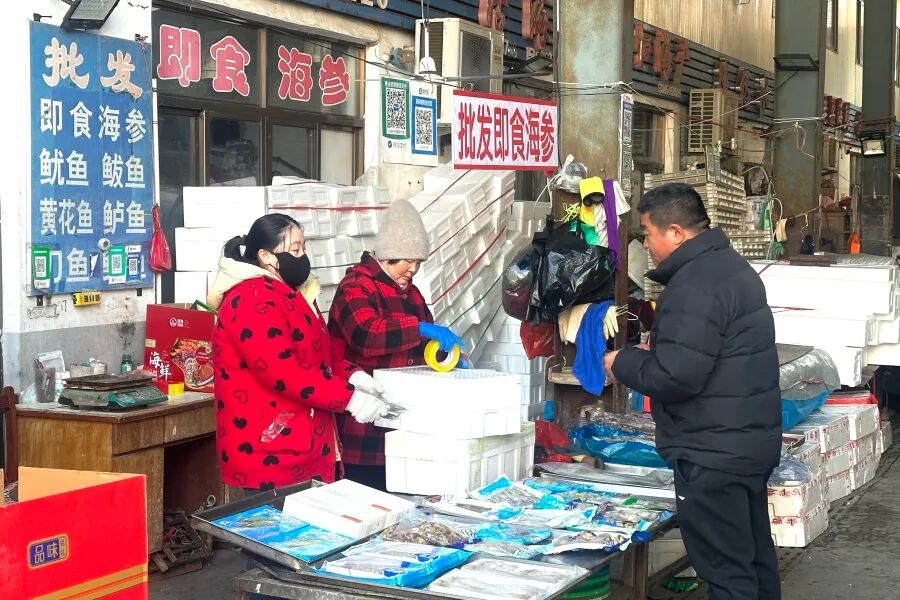 住在岛上,守着大海,长岛的年货清单里,怎能少了海产品?随着春节临近,长岛渔市也迎来了一年中的繁忙时节。据渔市一家海鲜店老板介绍,进入腊月以来,海鲜销量大幅提升,不少居民提前囤货,还有很多人专门来采购海鲜礼盒,邮寄给远方的亲友,既能传递年味,也能让外地亲朋在年节里品尝到地道的“家乡味”。
