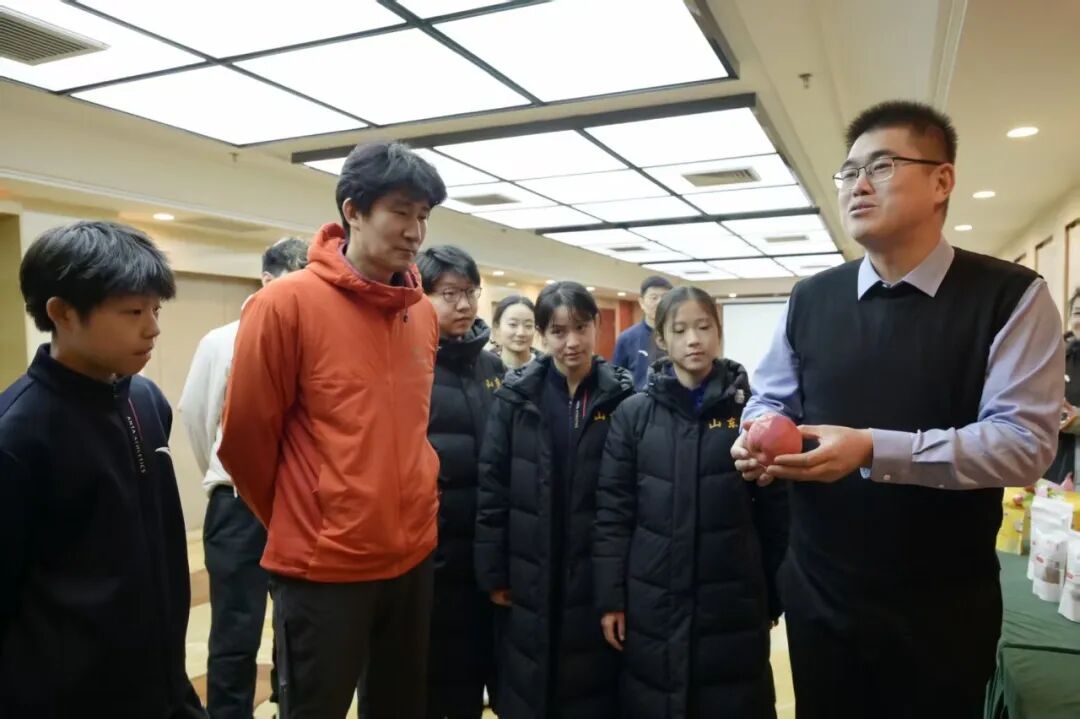 据悉,栖霞市与山东冰雪运动的合作已持续开展。自支持第九届亚冬会相关工作以来,双方联系日益紧密。此次慰问活动进一步深化了“苹果之都”与体育强省建设的互动融合。山东省冬季运动管理中心副主任张帆表示,栖霞苹果与山东体育都是优质品牌,二者的结合是双赢之举。