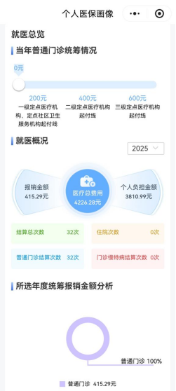 年度医疗总费用、医保报销金额、个人自付部分清晰呈现;生育待遇享受、就医备案情况、就医机构信息完整列明;费用变化趋势精准刻画,全年就医轨迹全程可查、全程可见。