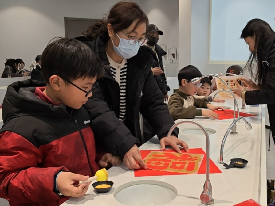 笔墨传情,美育润心。系列活动以新春送福字为核心载体,邀请多位书法名家走进社区,与辖区热爱书法的居民、青少年面对面交流,现场挥毫泼墨,传递新春祝福。在凤凰台街道凤鸣社区,烟台市硬笔书法协会主席钱鸿举先生为居民现场教学,耐心指导居民书写运笔,用笔墨勾勒新春向往;在白石街道新海阳社区,辖区联海书画社王老师带领书画社学员和社区书法爱好者齐聚一堂,挥毫泼墨、书写祝福,在红纸上描绘新年美好愿景;在奇山街道御龙山社区,烟台市书法协会岳寿波老师与居民们围坐交流,欢声笑语间,将文化暖意传递给每一位参与者;东山街道带领辖区15组家庭走进张裕1892艺术中心,开展亲子美育研学,家长和孩子们一起拓印福字……此外,只楚街道、黄务街道、世回尧街道、通伸街道、幸福街道、芝罘岛街道等多个街道、社区同步开展活动,让美育浸润居民心田,让传统文化在新春氛围中焕发生机。