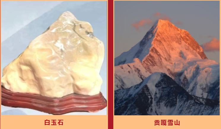 展品中,如“独山玉黄山”,石面天然纹理宛如写意黄山,奇松、怪石、云海意象浑然天成;“白玉石贡嘎雪山”则质地莹白、形神兼备,恰似“蜀山之王”的微缩圣景;“骨架石云冈石窟”更是形貌酷似,传递出千年石窟的厚重与雄浑。