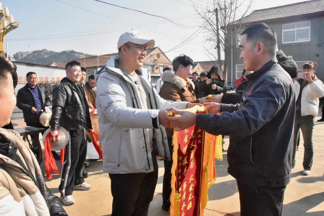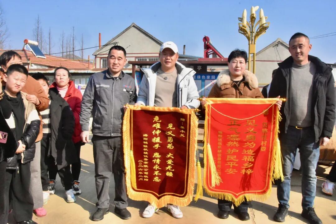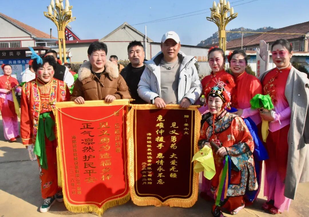 2月11日下午,海阳市碧城区岱格庄村委大院内锣鼓喧天、秧歌欢腾。在喜庆热烈的气氛中,铭铄机械设备有限公司3名员工手捧锦旗,来到市民姜琨的家乡岱格庄村,郑重送上两份沉甸甸的敬意。