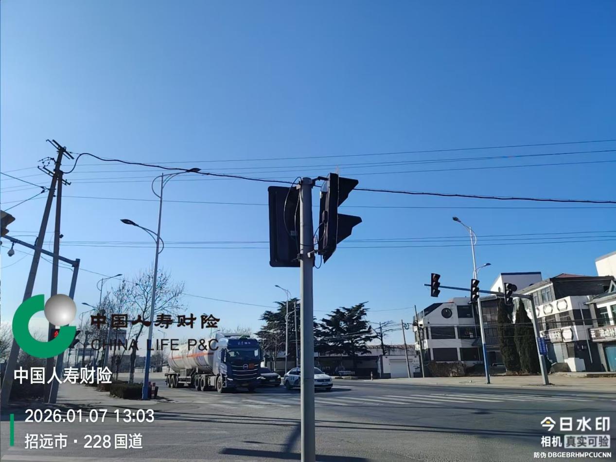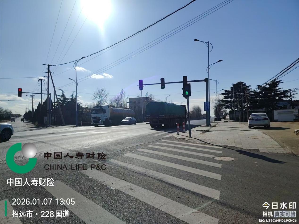 此前,招远国道228部分路段接连发生多起交通事故,引起了国寿财险烟台中支的高度警觉。为从源头上防范化解风险,公司立即组织专业人员前往现场进行实地考察。经排查核实,辛林线路口交通信号灯损坏失效,导致车辆、行人通行混乱并引发碰撞事故,形成极大道路安全隐患。