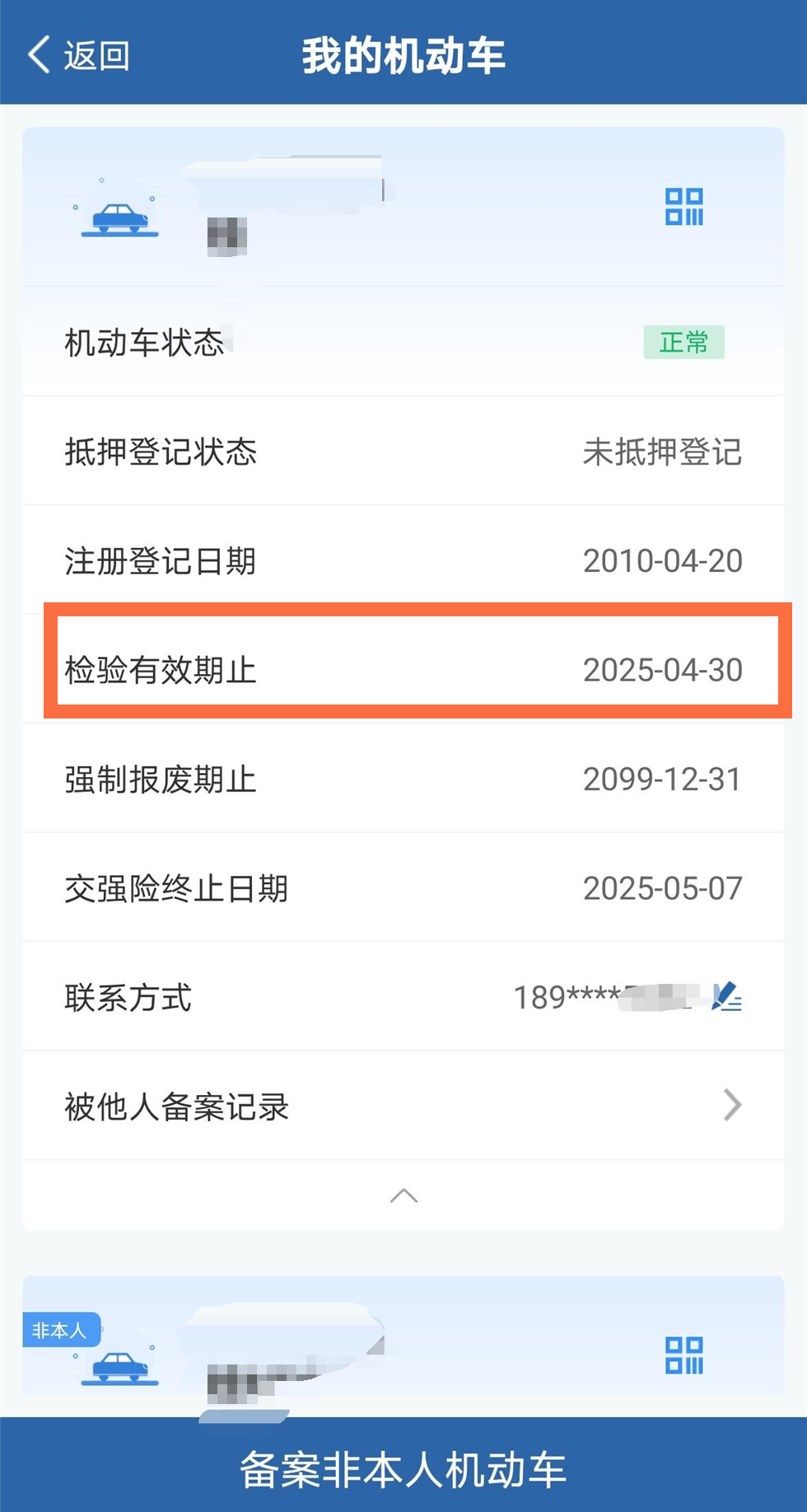 打开“交管12123”APP-首页“我的机动车”-打开“全部”就可以看到检验有效期。